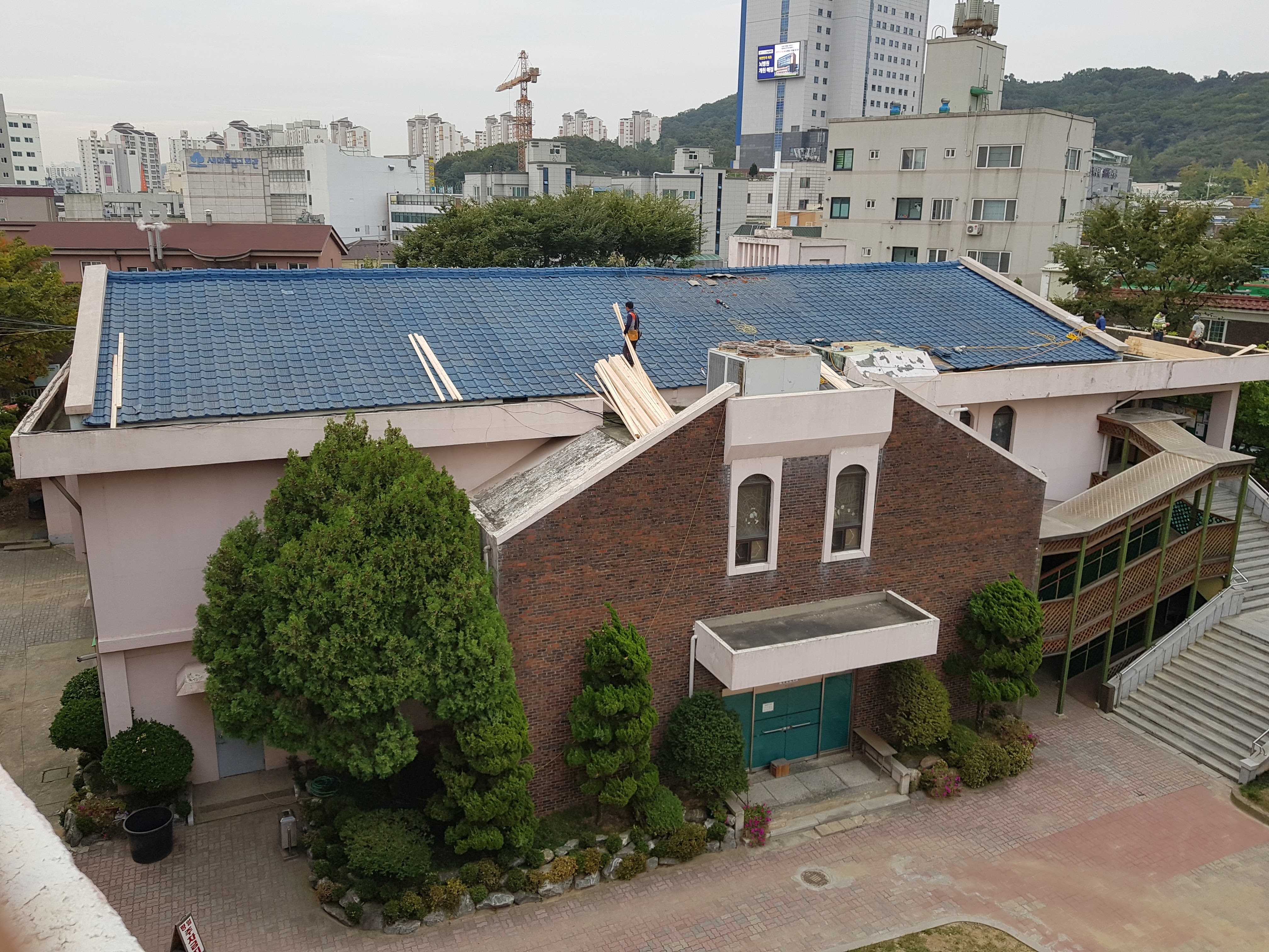 인천시 부평동 기와지붕과 슬라브로 되어있던 지붕을 기와끝부분에서 슬라브지붕까지 연결해 지붕개량