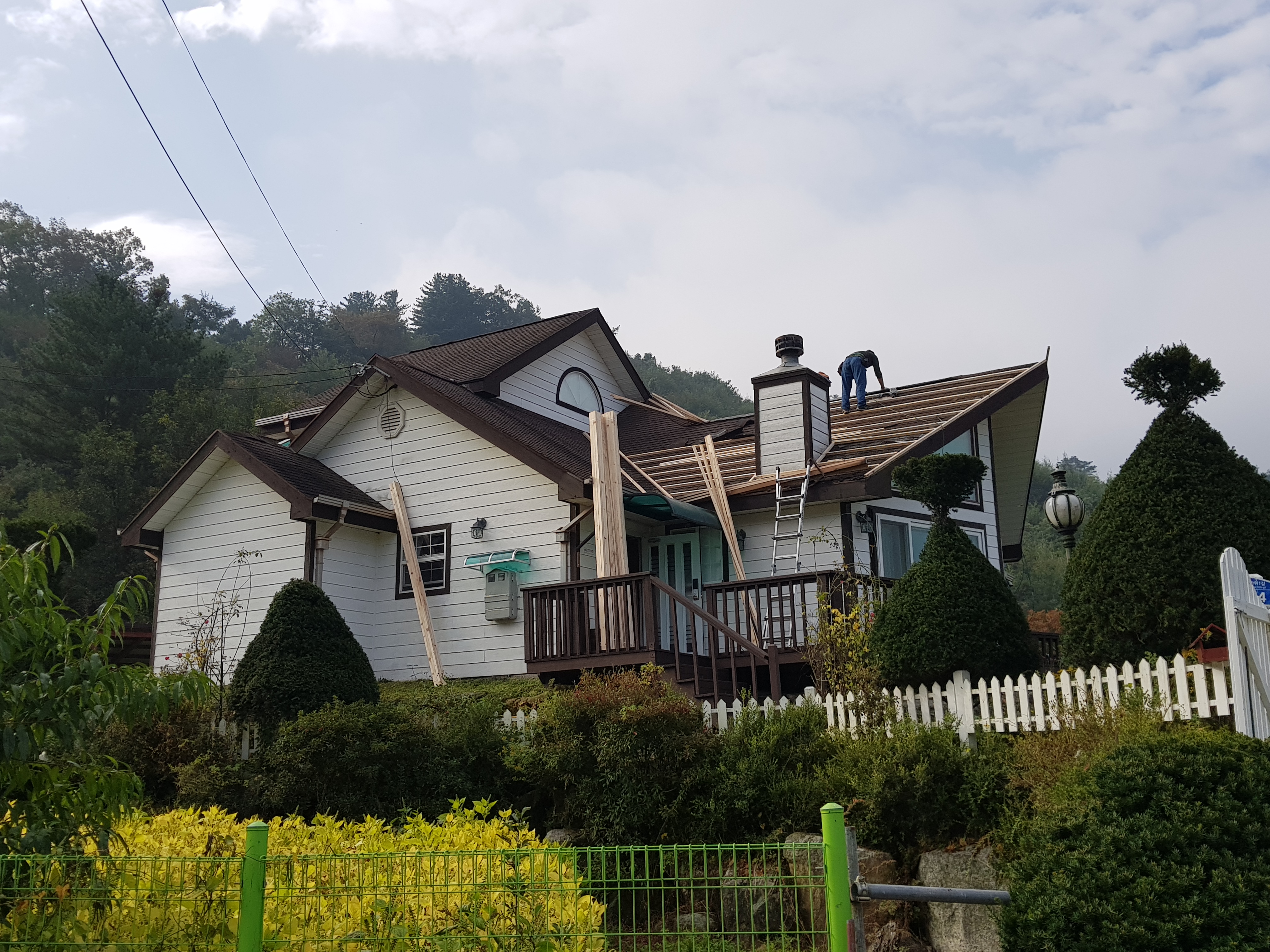 양평 서후리 아스팔트 싱글지붕이 노후돼 기와형 칼라강판으로 지붕개량