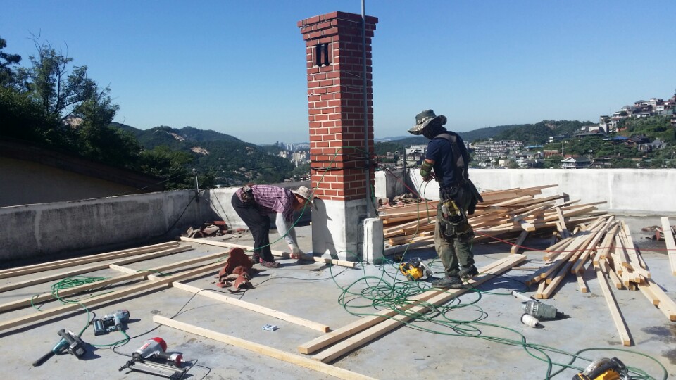 서울시 평창동의 슬라브 지붕을 옥상사용이 가능하도록 바닥 시트형으로 개량공사