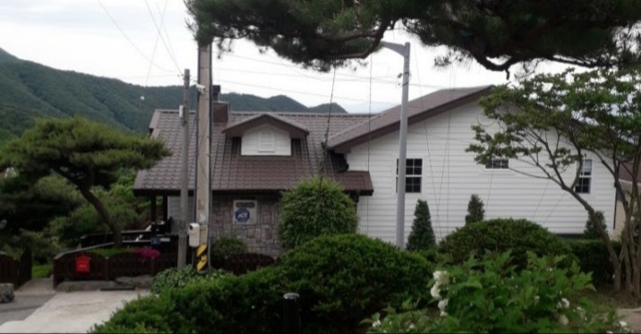 양평군 옥천면. 아스팔트싱글지붕을 칼라강판 평기와골 밤색스톤으로 개량공사.
