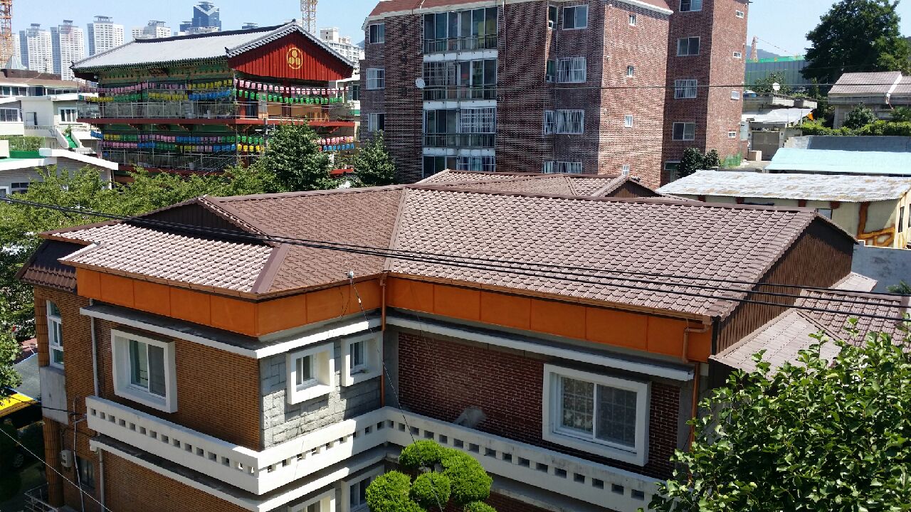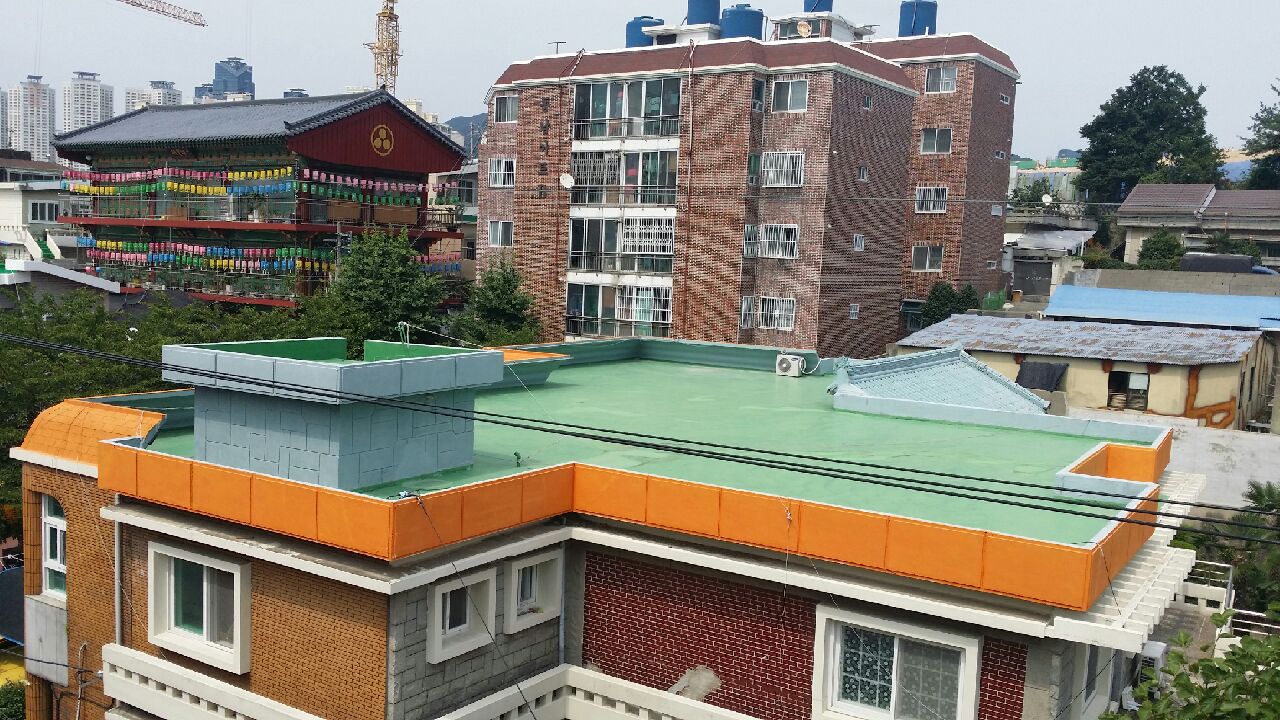 슬라브 지붕에 물탱크를 제거하고 하지작업후 방풍을 넣어 고전미와 현대감각을 살린 멋들어진 지붕을 만들었습니다